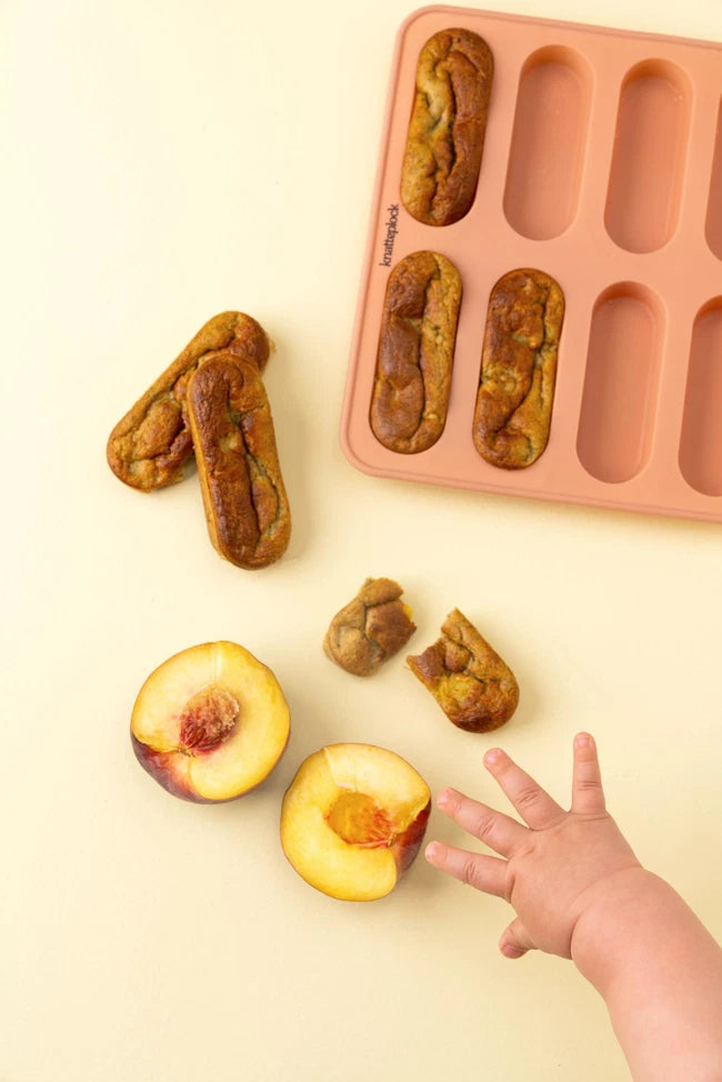 Grøtpinner er perfekte som en rask frokost eller mellommåltid for barn i ulike aldre. De er lette for små barn å gripe, og de er hendige å ta med på farten. I denne oppskriften har vi brukt våre bakeformer i silikon som gir 8 grøtpinner i perfekt størrelse for et lite barn.