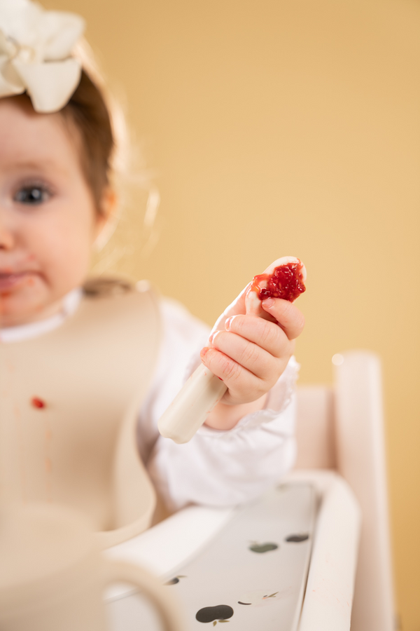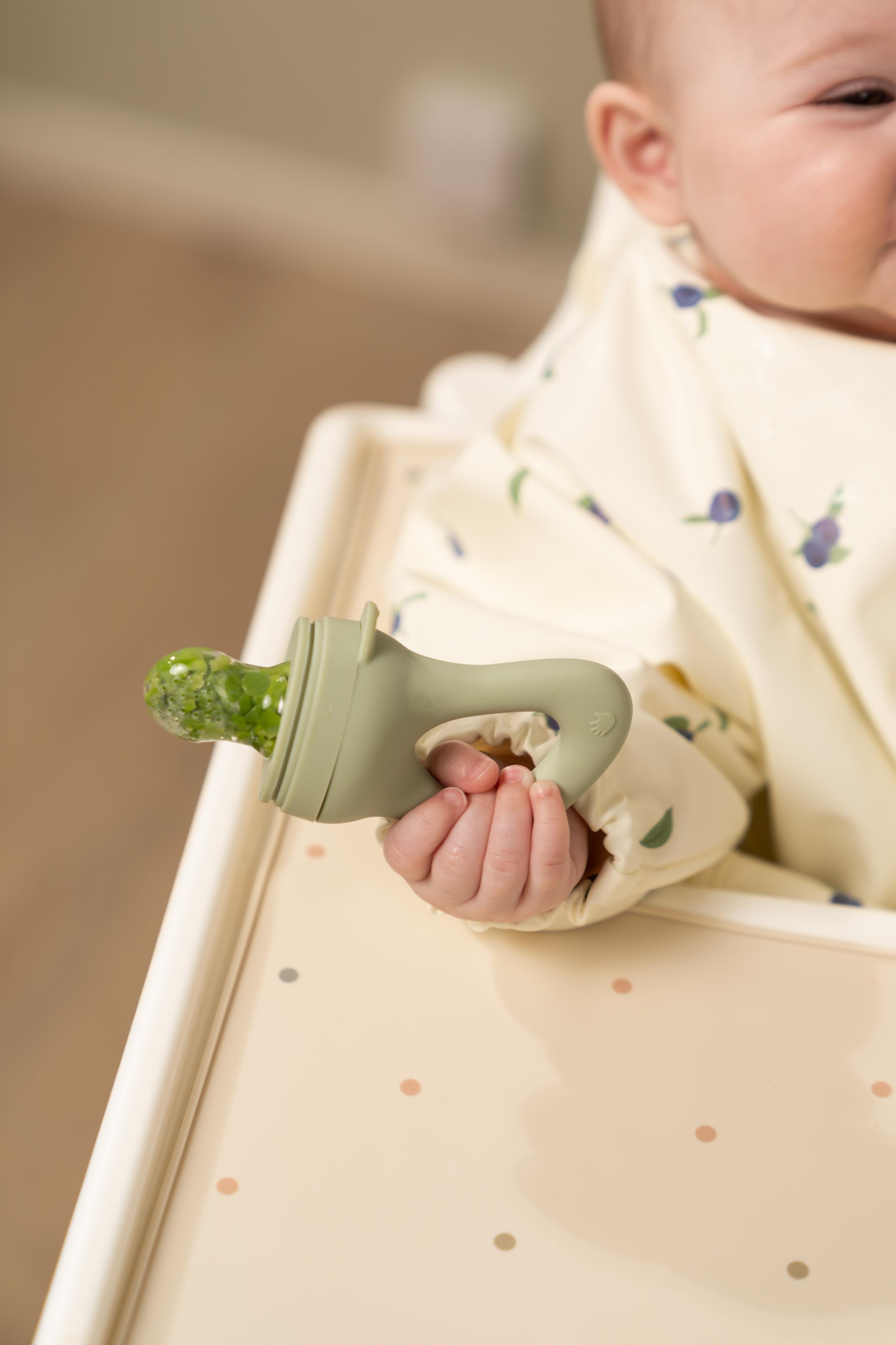 I denne startpakken får du alt du trenger til introduksjon av fast føde. Fra de aller første smaksprøvene i matsmokk, til å lære å drikke vann fra kopp. I pakken inngår: