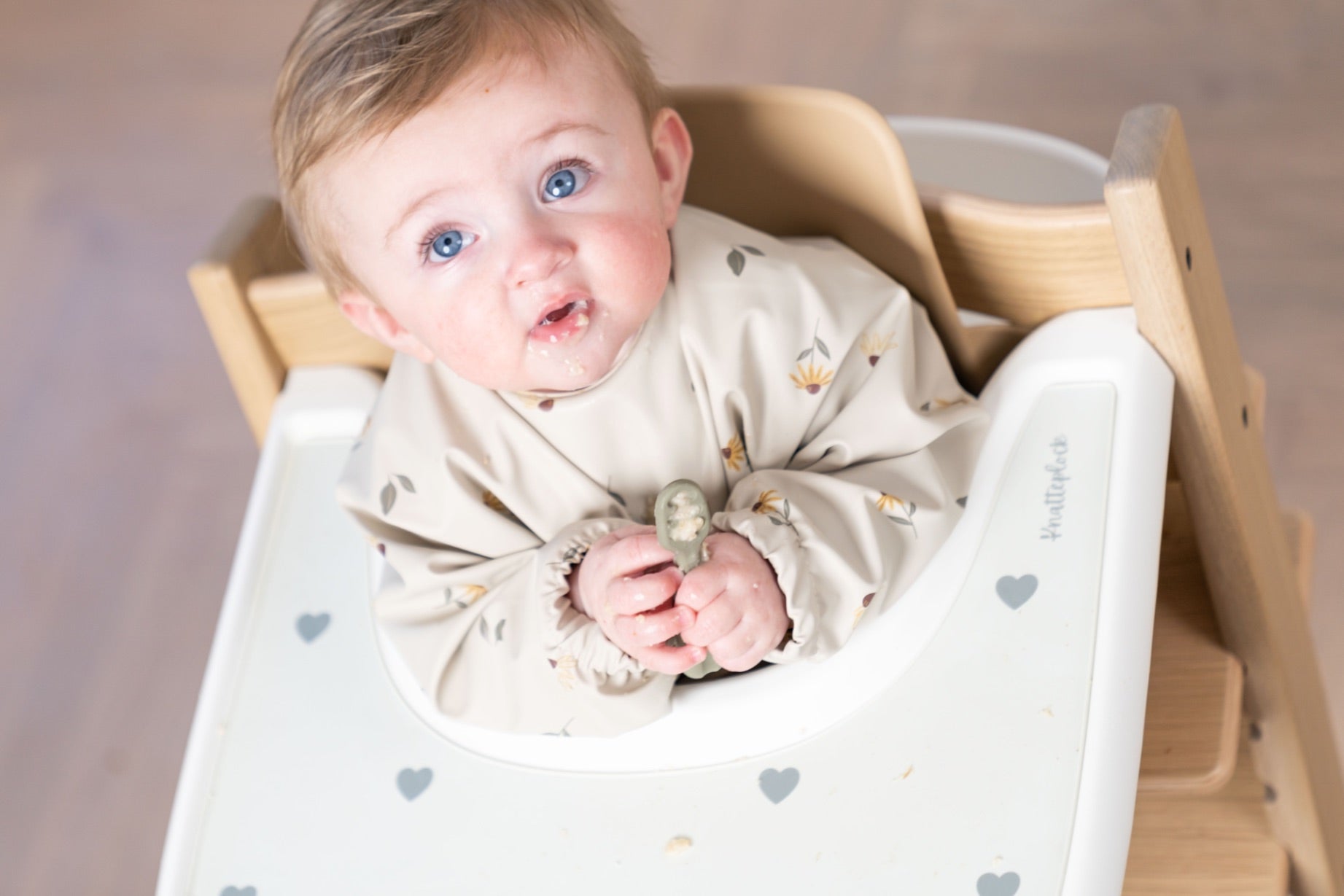 Fra 6 måneder er det på tide å begynne å introdusere fast føde (om barnet ditt er klart for det, tegn på at barnet ditt er klart for fast føde). Ved å bruke vår nybegynnerskje blir det enklere for barnet ditt å utforske maten på egen hånd.